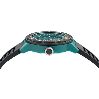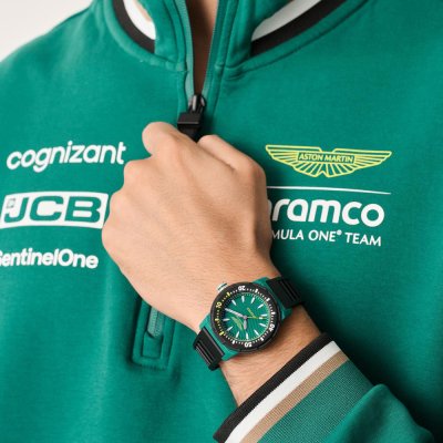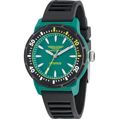 Dit Aston Martin horloge heeft een kast gemaakt van Resin met een diameter van 40 mm en is voorzien van een Rubber band. In de kast bevindt zich een Timex kwaliteitsuurwerk en is afgewerkt met Mineraalglas.