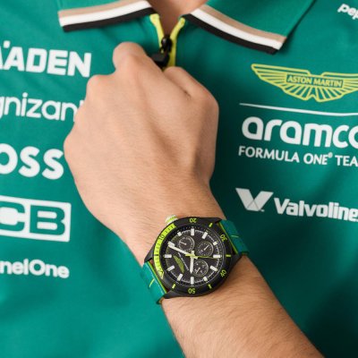 Dit Aston Martin horloge heeft een kast gemaakt van Resin met een diameter van 46 mm en is voorzien van een Rubber band. In de kast bevindt zich een Timex kwaliteitsuurwerk en is afgewerkt met Mineraalglas.