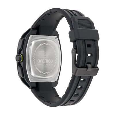 Dit Aston Martin horloge heeft een kast gemaakt van Resin met een diameter van 44 mm en is voorzien van een Rubber band.