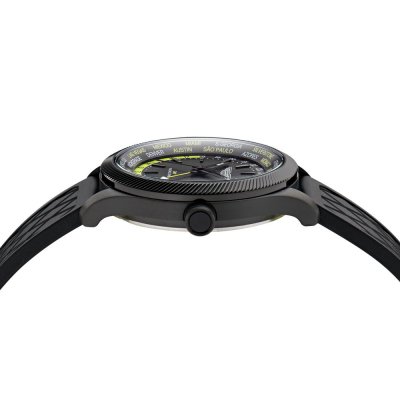 Dit Aston Martin horloge heeft een kast gemaakt van Staal zilver met een diameter van 41 mm en is voorzien van een Rubber band. In de kast bevindt zich een Timex kwaliteitsuurwerk en is afgewerkt met Mineraalglas.