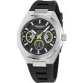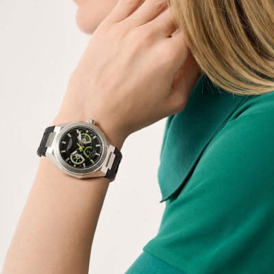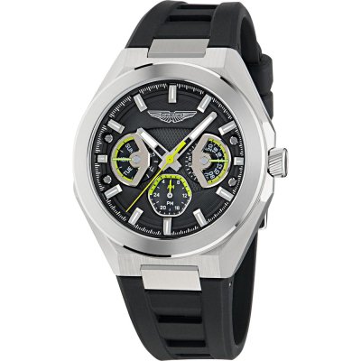 Dit Aston Martin horloge heeft een kast gemaakt van Staal zilver met een diameter van 42 mm en is voorzien van een Rubber band. In de kast bevindt zich een Timex kwaliteitsuurwerk en is afgewerkt met Mineraalglas.