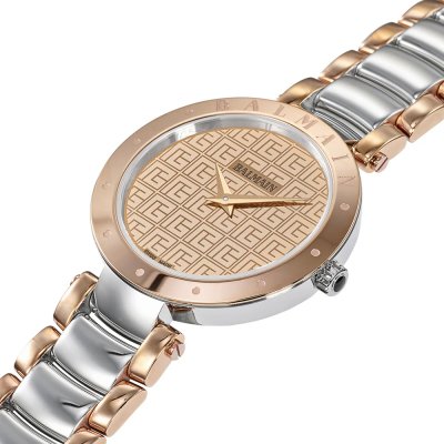 Dit Balmain horloge heeft een kast gemaakt van Staal zilver met een diameter van 33 mm en is voorzien van een Staal zilver band. In de kast bevindt zich een ETA kwaliteitsuurwerk en is afgewerkt met Saffierglas.