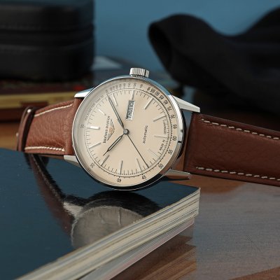 Dit Bauhaus horloge heeft een kast gemaakt van Staal zilver met een diameter van 42 mm en is voorzien van een leer band. In de kast bevindt zich een Miyota kwaliteitsuurwerk en is afgewerkt met K1 Mineraalglas.