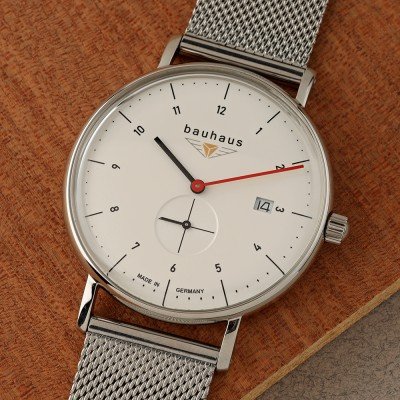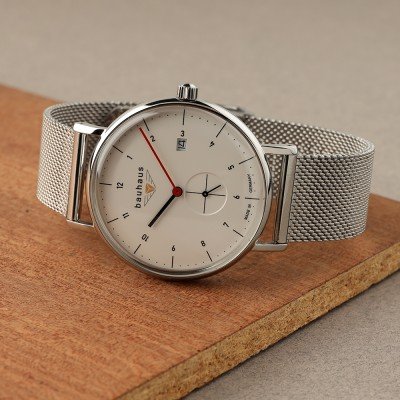 Dit Bauhaus horloge heeft een kast gemaakt van Staal zilver met een diameter van 41 mm en is voorzien van een Staal zilver band. In de kast bevindt zich een Ronda kwaliteitsuurwerk en is afgewerkt met K1 Mineraalglas.