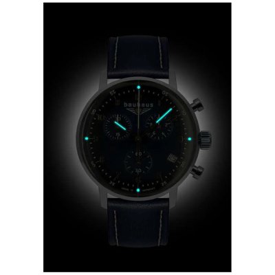 Dit Bauhaus horloge heeft een kast gemaakt van Staal zilver met een diameter van 41 mm en is voorzien van een leer band. In de kast bevindt zich een ETA kwaliteitsuurwerk en is afgewerkt met K1 Mineraalglas.