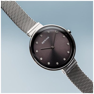 Dit Bering horloge heeft een kast gemaakt van Staal zilver met een diameter van 34 mm en is voorzien van een Roestvrij staal, Goud 18K band. In de kast bevindt zich een Miyota kwaliteitsuurwerk en is afgewerkt met Saffierglas.