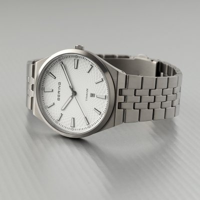 Dit Bering horloge heeft een kast gemaakt van Titanium met een diameter van 41 mm en is voorzien van een Titanium band. In de kast bevindt zich een Ronda kwaliteitsuurwerk en is afgewerkt met Saffierglas.