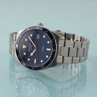 Dit Boccia horloge heeft een kast gemaakt van Titanium met een diameter van 39 mm en is voorzien van een Titanium band. In de kast bevindt zich een Miyota kwaliteitsuurwerk en is afgewerkt met Mineraalglas.