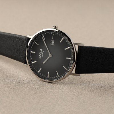 Dit Boccia horloge heeft een kast gemaakt van Titanium met een diameter van 39 mm en is voorzien van een leer band. In de kast bevindt zich een Miyota kwaliteitsuurwerk en is afgewerkt met Saffierglas.