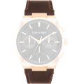 Dit Calvin Klein horlogebandje is gemaakt van leer en wordt aan het horloge bevestigd door middel van stalen pennen. De band heeft een breedte van 26 mm en wordt gesloten door middel van een gesp. De band heeft geen rechte aanzet wat betekent dat deze band alleen geschikt is voor de horloges die hieronder worden vermeld.