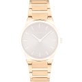 Dit Calvin Klein horlogebandje is gemaakt van roestvrij staal en wordt aan het horloge bevestigd door middel van bandpennen. De band heeft een breedte van 19 mm en wordt gesloten door middel van een vouwsluiting met drukknoppen. De band heeft geen rechte aanzet wat betekent dat deze band alleen geschikt is voor de horloges die hieronder worden vermeld.