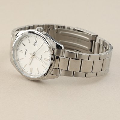 Dit Casio horloge heeft een kast gemaakt van Metaal Legering met een diameter van 38.5 mm en is voorzien van een Staal zilver band. In de kast bevindt zich een Casio kwaliteitsuurwerk en is afgewerkt met Mineraalglas.