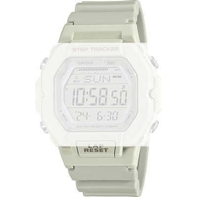 Dit Casio horlogebandje is gemaakt van resin en wordt aan het horloge bevestigd door middel van bandpennen. De band heeft een breedte van 20 mm en wordt gesloten door middel van een gesp. De band heeft geen rechte aanzet wat betekent dat deze band alleen geschikt is voor de horloges die hieronder worden vermeld.