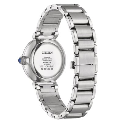 Dit Citizen horloge heeft een kast gemaakt van Staal zilver met een diameter van 29.5 mm en is voorzien van een Staal zilver band. In de kast bevindt zich een Citizen kwaliteitsuurwerk en is afgewerkt met Saffierglas.
