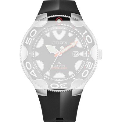 Dit Citizen horlogebandje is gemaakt van siliconen en wordt aan het horloge bevestigd door middel van bandpennen. De band heeft een breedte van 25 mm en wordt gesloten door middel van een gesp. De band heeft geen rechte aanzet wat betekent dat deze band alleen geschikt is voor de horloges die hieronder worden vermeld.