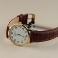 Teruggestuurd horloge met kleine krassen op de achterkant en schade aan de bovenkant van het leren bandje (bij de gesp).