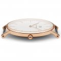 Het blauw en wit van de Schotse vlag zijn verwerkt in de NATO band van het Daniel Wellington Classic Glasgow horloge. Het model 0503DW heeft een 36 mm roségouden kast en een witte wijzerplaat.