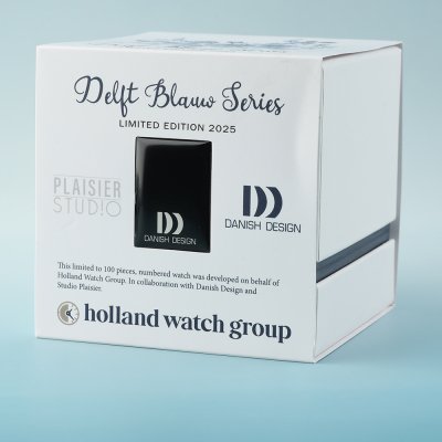 Geïnspireerd door Delfts blauw, in samenwerking met Sudio Plaisier en Danish Design, heeft Holland Watch Group een horloge in Nederlandse stijl gecreëerd - of eigenlijk drie horloges - die onze traditie vertegenwoordigen. Horloges in een modern jasje met een extra cadeau: een halsketting met keramische hanger, handgemaakt door ambachtslieden voor deze tot slechts 100 stuks gelimiteerde editie.