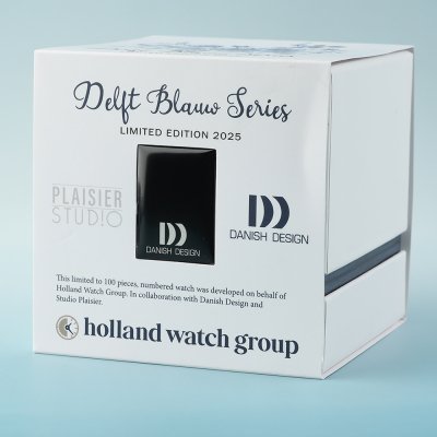 Geïnspireerd door Delfts blauw, in samenwerking met Sudio Plaisier en Danish Design, heeft Holland Watch Group een horloge in Nederlandse stijl gecreëerd - of eigenlijk drie horloges - die onze traditie vertegenwoordigen. Horloges in een modern jasje met een extra cadeau: een halsketting met keramische hanger, handgemaakt door ambachtslieden voor deze tot slechts 100 stuks gelimiteerde editie.