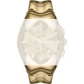 Dit Diesel horlogebandje is gemaakt van metaal en wordt aan het horloge bevestigd door middel van bandpennen. De band heeft een breedte van 27 mm en wordt gesloten door middel van een vouwsluiting met drukknoppen. De band heeft geen rechte aanzet wat betekent dat deze band alleen geschikt is voor de horloges die hieronder worden vermeld.