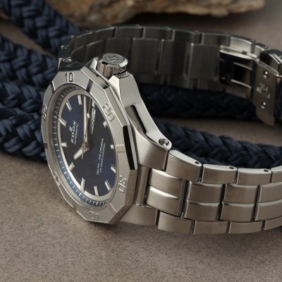 Dit Edox horloge heeft een kast gemaakt van Staal zilver met een diameter van 43 mm en is voorzien van een Staal zilver band. In de kast bevindt zich een Sellita kwaliteitsuurwerk en is afgewerkt met Saffierglas.