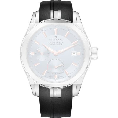 Dit Edox horlogebandje is gemaakt van rubber en wordt aan het horloge bevestigd door middel van schroef. De band heeft een breedte van 18.5 mm en wordt gesloten door middel van een vlindergesp. De band heeft geen rechte aanzet wat betekent dat deze band alleen geschikt is voor de horloges die hieronder worden vermeld.