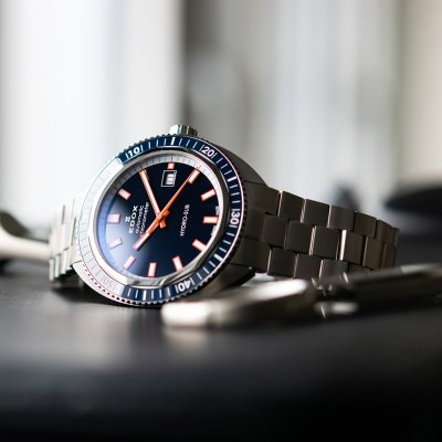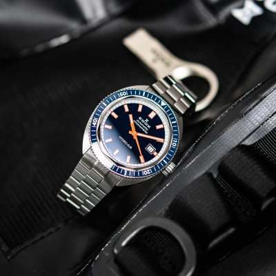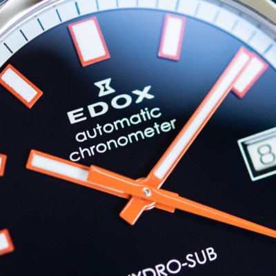 Deze Edox Hydro-Sub is een speciale tot slechts 500 stuks gelimiteerde editie. Het is waterdicht tot 30 ATM en wordt aangedreven door een automatisch Edox Caliber 806 uurwerk dat is gebaseerd op de Sellita SW200 en COSC gecertificeerd. Het klassieke ontwerp wordt versterkt door de subtiele inzet van keramische bezel en prominente lichtgevende wijzers en indexen.