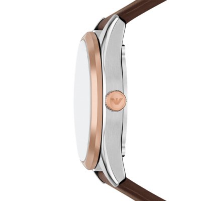 Dit Emporio Armani horloge heeft een kast gemaakt van Staal zilver met een diameter van 43 mm en is voorzien van een leer band. In de kast bevindt zich een Miyota kwaliteitsuurwerk en is afgewerkt met Mineraalglas.