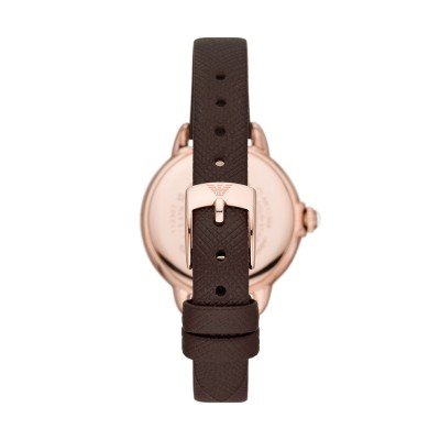Dit Emporio Armani horloge heeft een kast gemaakt van Staal zilver met een diameter van 32 mm en is voorzien van een leer band. In de kast bevindt zich een Miyota kwaliteitsuurwerk en is afgewerkt met Mineraalglas.