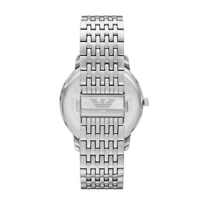 Dit Emporio Armani horloge heeft een kast gemaakt van Staal zilver met een diameter van 42 mm en is voorzien van een Staal zilver band. In de kast bevindt zich een Miyota kwaliteitsuurwerk en is afgewerkt met Mineraalglas.