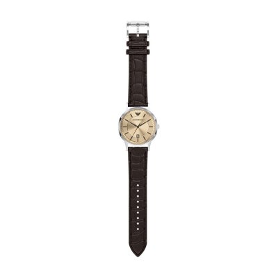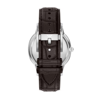Dit Emporio Armani horloge heeft een kast gemaakt van Staal zilver met een diameter van 43 mm en is voorzien van een leer band. In de kast bevindt zich een Seiko Instruments Inc. kwaliteitsuurwerk en is afgewerkt met Mineraalglas.