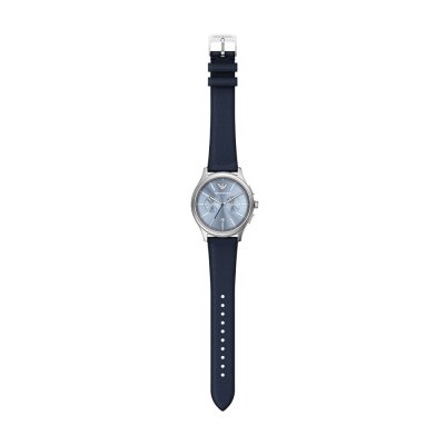 Dit Emporio Armani horloge heeft een kast gemaakt van Staal zilver met een diameter van 42 mm en is voorzien van een leer band. In de kast bevindt zich een Miyota kwaliteitsuurwerk en is afgewerkt met Mineraalglas.