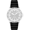 Dit Emporio Armani horlogebandje is gemaakt van siliconen en wordt aan het horloge bevestigd door middel van bandpennen. De band heeft een breedte van 22 mm en wordt gesloten door middel van een gesp. De band heeft geen rechte aanzet wat betekent dat deze band alleen geschikt is voor de horloges die hieronder worden vermeld.