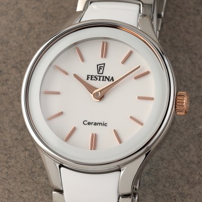 Dit Festina horloge heeft een kast gemaakt van Roestvrij staal en keramiek met een diameter van 31 mm en is voorzien van een Keramiek band. In de kast bevindt zich een Miyota kwaliteitsuurwerk en is afgewerkt met Mineraalglas.