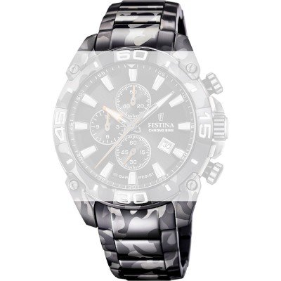 Dit Festina horlogebandje is gemaakt van siliconen en wordt aan het horloge bevestigd door middel van bandpennen. De band heeft een breedte van 22 mm en wordt gesloten door middel van een gesp. De band heeft geen rechte aanzet wat betekent dat deze band alleen geschikt is voor de horloges die hieronder worden vermeld.