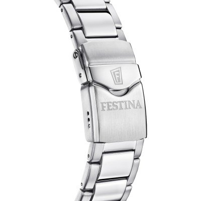 Dit Festina horloge heeft een kast gemaakt van Staal zilver met een diameter van 46 mm en is voorzien van een Staal zilver band. In de kast bevindt zich een Miyota kwaliteitsuurwerk en is afgewerkt met Saffierglas.