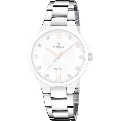 Dit Festina horlogebandje is gemaakt van roestvrij staal en wordt aan het horloge bevestigd door middel van stalen pennen. De band heeft een breedte van 18 mm en wordt gesloten door middel van een vouwsluiting met drukknoppen. De band heeft geen rechte aanzet wat betekent dat deze band alleen geschikt is voor de horloges die hieronder worden vermeld.