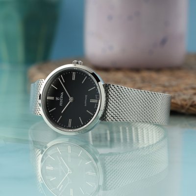 Dit Festina horloge heeft een kast gemaakt van Staal zilver met een diameter van 29 mm en is voorzien van een Staal zilver band. In de kast bevindt zich een Ronda kwaliteitsuurwerk en is afgewerkt met Saffierglas.