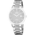 Dit Festina horlogebandje is gemaakt van roestvrij staal en wordt aan het horloge bevestigd door middel van bandpennen. De band heeft een breedte van 20 mm en wordt gesloten door middel van een onzichtbare vlindersluiting. De band heeft geen rechte aanzet wat betekent dat deze band alleen geschikt is voor de horloges die hieronder worden vermeld.