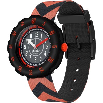 Dit Flik Flak horloge heeft een kast gemaakt van Bio-plastic met een diameter van 33.6 mm en is voorzien van een textiel band. In de kast bevindt zich een ETA kwaliteitsuurwerk en is afgewerkt met Acrylglas.