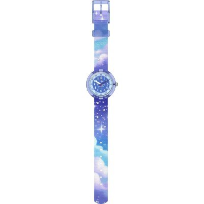 Dit Flik Flak horloge heeft een kast gemaakt van Bio-plastic met een diameter van 30 mm en is voorzien van een textiel band. In de kast bevindt zich een ETA kwaliteitsuurwerk en is afgewerkt met Acrylglas.