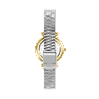 Dit Fossil horloge heeft een kast gemaakt van Staal zilver met een diameter van 28 mm en is voorzien van een Staal zilver band. In de kast bevindt zich een Seiko Instruments Inc. kwaliteitsuurwerk en is afgewerkt met Mineraalglas.