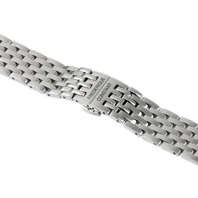 Dit Frederique Constant horlogebandje is gemaakt van roestvrij staal en wordt aan het horloge bevestigd door middel van bandpennen. De band heeft een breedte van 18 mm en wordt gesloten door middel van een vlindersluiting met drukknoppen. De band heeft geen rechte aanzet wat betekent dat deze band alleen geschikt is voor de horloges die hieronder worden vermeld.