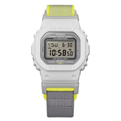 Dit G-Shock horloge heeft een kast gemaakt van Bio-plastic met een diameter van 42.8 mm en is voorzien van een textiel band. In de kast bevindt zich een Casio kwaliteitsuurwerk en is afgewerkt met Mineraalglas.