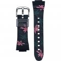 Dit G-Shock horlogebandje is gemaakt van kunststof en wordt aan het horloge bevestigd door middel van bandpennen. De band heeft een breedte van 23 mm en wordt gesloten door middel van een gesp. De band heeft geen rechte aanzet wat betekent dat deze band alleen geschikt is voor de horloges die hieronder worden vermeld.