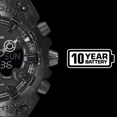 Soms denkt u misschien dat er niets meer te verbeteren valt aan horloges in de 21e eeuw, maar dan heeft u buiten G-Shock gerekend. Na veertig jaar van constante innovatie is het merk er opnieuw in geslaagd om de horlogewereld te verrassen met een volledig uniek en origineel ontwerp. Met een compleet nieuwe benadering van de constructie heeft de GA-V01 niet alleen een spectaculair uiterlijk, maar is het ook super schokbestendig en verbergt opmerkelijke technische innovaties: De kaststructuur, die het uurwerk beschermt, maakt gebruik van een geïntegreerde bezel- en armbandconstructie die het glas gedeeltelijk overlapt en zo ook als bumper fungeert om schokken op te vangen. Casio heeft ook een nieuwe magnetische wijzerconstructie ontwikkeld, waarbij de wijzers, die normaal gesproken kwetsbaar zijn voor schokken, niet aan de as zijn bevestigd, maar op hun plaats worden gehouden door magnetische kracht. Hierdoor kunnen ze schokken effectief absorberen en afvoeren. Deze nieuwe technologie maakt het ook mogelijk om grotere, uniek gevormde wijzers te maken omdat de as hun gewicht niet hoeft te dragen. Na een schok of trilling kunnen de wijzers tijdelijk uit positie verschuiven, maar binnen een paar minuten keren ze op bijna magische wijze terug naar hun oorspronkelijke positie. De analoog-digitale wijzerplaat heeft een gelaagde constructie met een metalen wijzerplaat met rastergedeeltes, die een decoratieve blik in het interieur werpen, en een LCD-display. Dit horloge is niet voor degenen die risico's mijden. Het is opvallend, groot en zal mensen zeker aan het praten krijgen! En, u bent verzekerd van een sterk en krachtig uurwerk dat blijft werken, ongeacht schokken en stoten!
