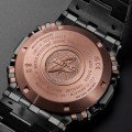 De gehamerde bezel en band zijn gemaakt van DAT55G, een speciale titanium legering uit Japan die drie keer zo hard is als puur titanium. Elk stuk is met de hand bewerkt door tsuiki-meester Kazuya Watanabe. Het unieke patroon van elke horloge ontstaat door de vorm van zijn beitel en de kracht waarmee hij slaat. De kast heeft een zilvergrijze kleur met een subtiele glans, geïnspireerd op traditionele zwaard details. Dankzij een harde DLC-coating blijft die look ook behouden. De koperkleurige schroeven en knoppen zorgen voor een luxe, opvallend accent in het design. Een krachtig statement-piece dat traditionele Japanse esthetiek combineert met pure G-SHOCK toughness. Deze MR-G hoort met recht bij de absolute top van het merk.