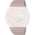 Dit G-Shock horlogebandje is gemaakt van resin en wordt aan het horloge bevestigd door middel van quick release bandpennen. De band heeft een breedte van 24 mm en wordt gesloten door middel van een gesp. De band heeft geen rechte aanzet wat betekent dat deze band alleen geschikt is voor de horloges die hieronder worden vermeld.