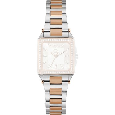 Dit GC horlogebandje is gemaakt van metaal en wordt aan het horloge bevestigd door middel van schroef. De band heeft een breedte van 18 mm en wordt gesloten door middel van een onzichtbare vlindersluiting. De band heeft geen rechte aanzet wat betekent dat deze band alleen geschikt is voor de horloges die hieronder worden vermeld.
