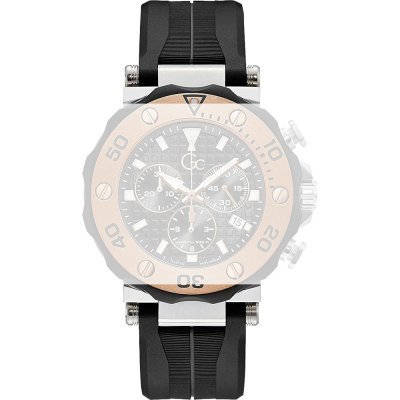Dit GC horlogebandje is gemaakt van siliconen/Rubber en wordt aan het horloge bevestigd door middel van schroef. De band heeft een breedte van 24 mm en wordt gesloten door middel van een gesp. De band heeft geen rechte aanzet wat betekent dat deze band alleen geschikt is voor de horloges die hieronder worden vermeld.